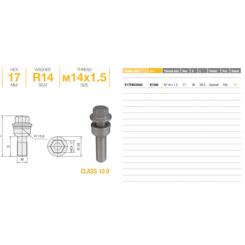 Rato varžtas M14x1,5x30mm - Audi Q automobilių OEM varžtas (OEM Kodas 8R0601295)